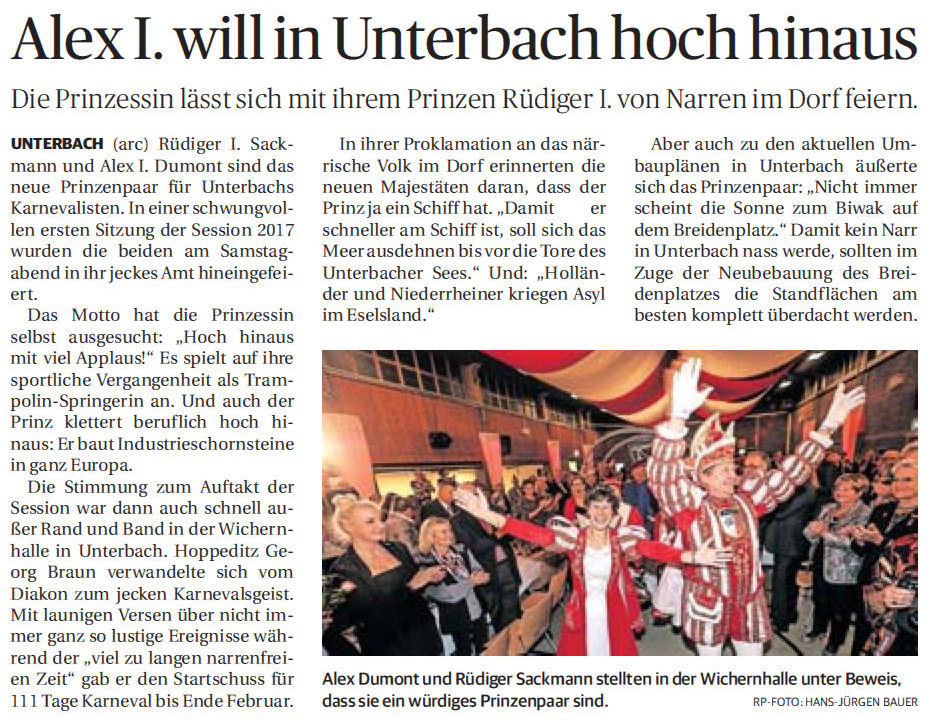 > Alex I. will in Unterbach hoch hinaus