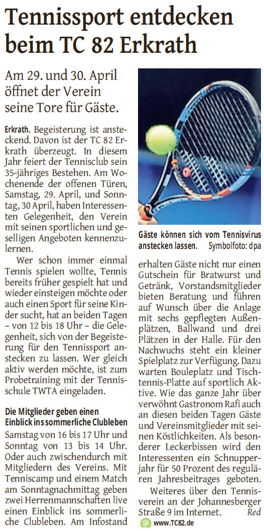 > Tennissport entdecken beim TC 82 Erkrath