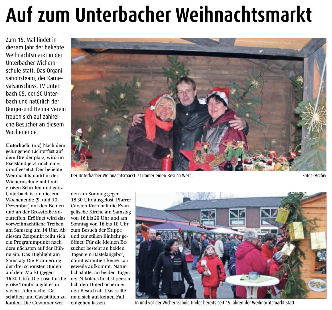 > Auf zum Unterbacher Weihnachtsmarkt